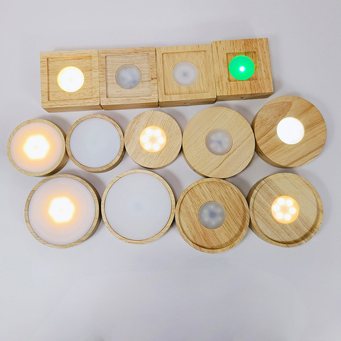 2025 Criativo Sólido Luminoso Usb Interruptor Noite Luz Base 3d Lâmpada Acrílica Levou Madeira Base De Madeira Levou Bases De Luz para Decoração