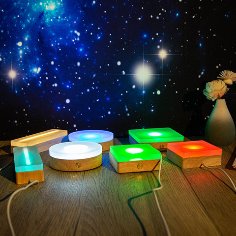 Retangular De Madeira Led Luzes Display Base Stand 3D Plexiglass Suporte Da Lâmpada Inteligente com Cabo USB para Acrílico Night Lights Resina